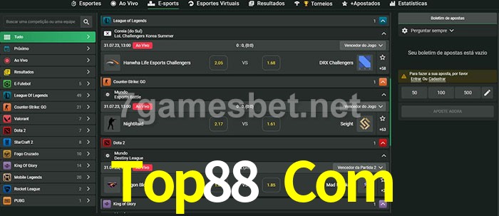 O Top88 Com oferece uma grande seleção de opções de apostas em e-sports com probabilidades competitivas